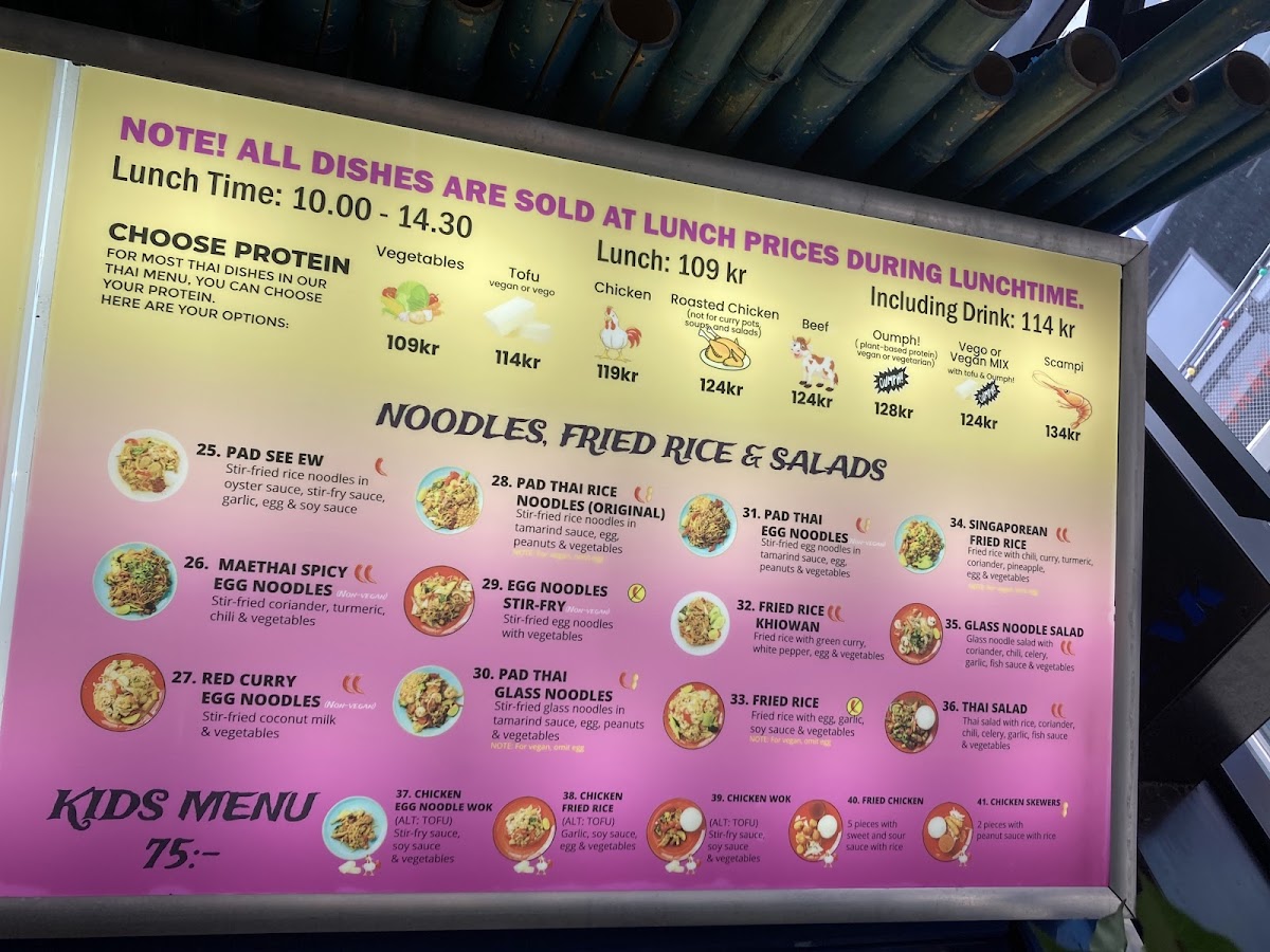 Introducing the menu at Mae Thai Hötorget, a cozy eatery in the heart of Stockholm, is a delightful experience for lovers of Thai cuisine. The menu features a range of flavorful offerings, including aromatic stews like Tom Kha Soppa and Massaman Curry, all priced at a reasonable SEK 155. For those craving a noodle fix, the Pad Thai stands out as a must-try, with its perfect balance of taste and texture. Customers rave about classics like the Orange Chicken, which combines crispy chicken with a zesty sauce, all for SEK 135. Vegetarians can enjoy a variety of options, including the vibrant Cashew Wok and both curries bursting with fresh vegetables. Although the space is compact and more of a kiosk-style setup, the flavors truly shine, making Mae Thai Hötorget a great stop for a satisfying takeaway or a quick meal amidst city life.
